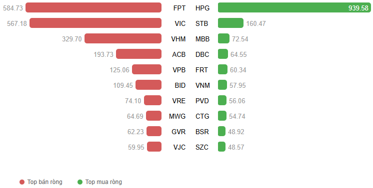 Giá trị giao dịch ròng theo mã cổ phiếu. Đvt: Tỷ đồng