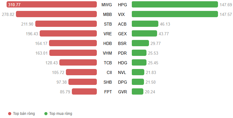 Giá trị giao dịch ròng theo mã cổ phiếu. Đvt: Tỷ đồng