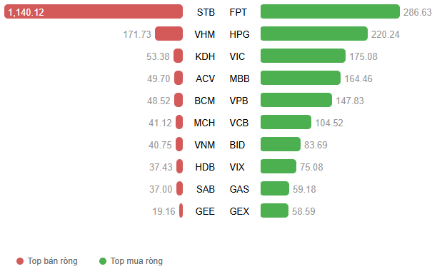 Giá trị giao dịch ròng theo mã cổ phiếu. Đvt: Tỷ đồng