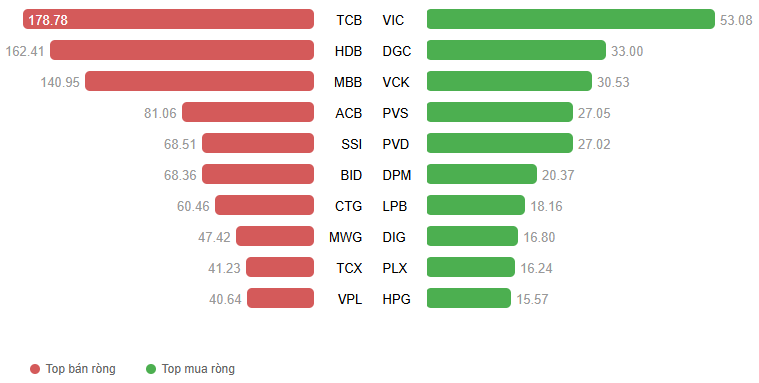 Giá trị giao dịch ròng theo mã cổ phiếu. Đvt: Tỷ đồng