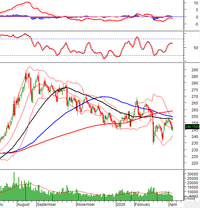 HNX-Index – Nằm dưới đường Middle của Bollinger Bands