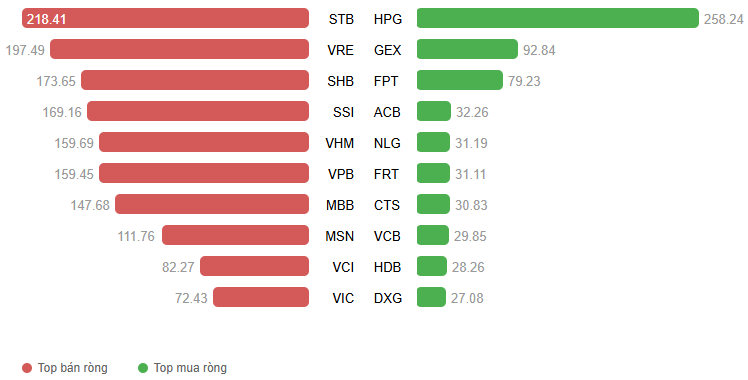 Giá trị giao dịch ròng theo mã cổ phiếu. Đvt: Tỷ đồng