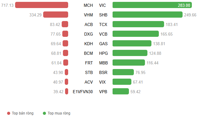 Giá trị giao dịch ròng theo mã cổ phiếu. Đvt: Tỷ đồng