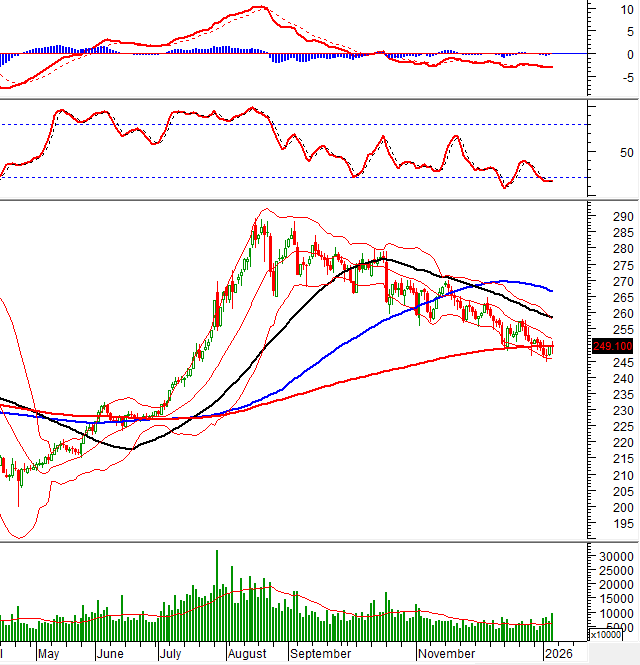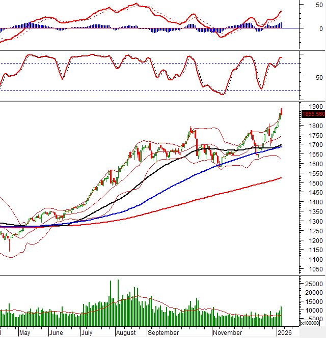 Triển vọng ngắn hạn vẫn được đánh giá tích cực khi chỉ số đang bám sát Upper Band của Bollinger Bands, trong khi MACD duy trì xu hướng đi lên và nới rộng khoảng cách với đường Signal. Dù vậy, chỉ báo Stochastic Oscillator đang tiến sâu vào vùng quá mua (overbought) nên nhà đầu tư cũng cần lưu ý rủi ro rung lắc nếu xuất hiện tín hiệu đảo chiều trong các phiên tới.