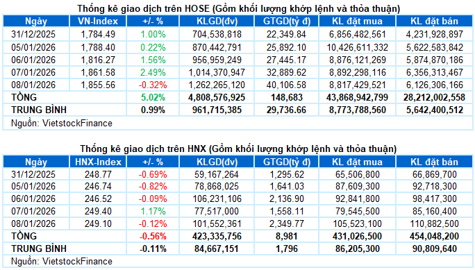 I. PHÂN TÍCH THỊ TRƯỜNG CHỨNG KHOÁN CƠ SỞ NGÀY 08/01/2026