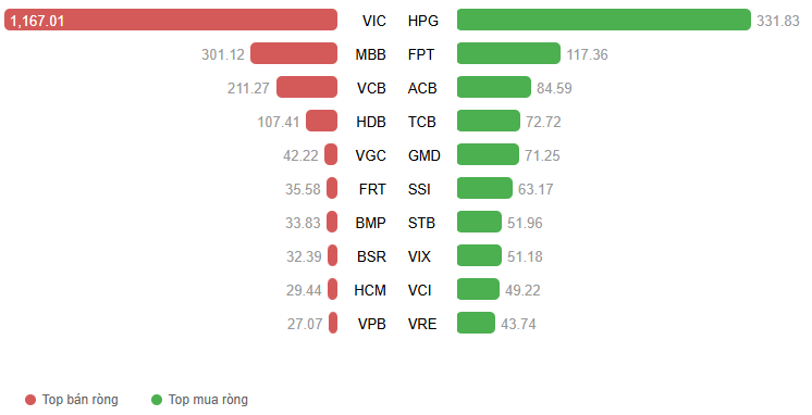 Giá trị giao dịch ròng theo mã cổ phiếu. Đvt: Tỷ đồng
