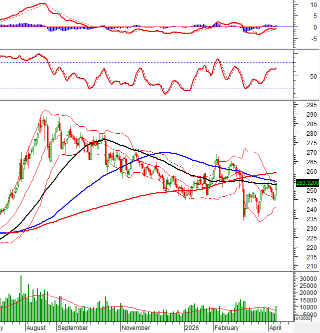 Hiện tại, MACD tiếp tục nới rộng khoảng cách với đường Signal sau khi cho tín hiệu mua. Tình hình sẽ càng lạc quan hơn nếu chỉ báo duy trì trạng thái này và cắt lên ngưỡng 0 trong các phiên tới.
