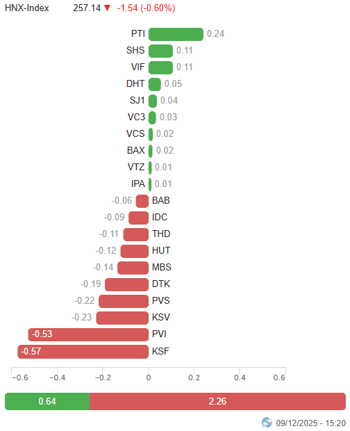 HNX-Index tiếp tục giảm điểm phiên thứ 3 liên tiếp và đang test lại đáy cũ tháng 11/2025 (tương đương vùng 255-259 điểm). Kết quả test ngưỡng này sẽ quyết định xu hướng trong thời gian tới.