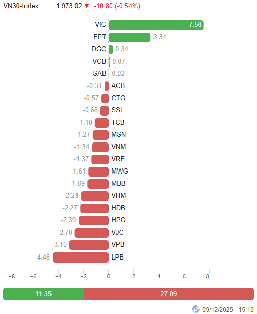 I. PHÂN TÍCH THỊ TRƯỜNG CHỨNG KHOÁN CƠ SỞ NGÀY 09/12/2025