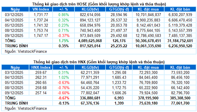 III. THỐNG KÊ THỊ TRƯỜNG NGÀY 09/12/2025