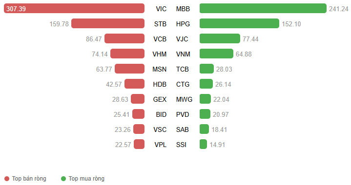 Giá trị giao dịch ròng theo mã cổ phiếu. Đvt: Tỷ đồng