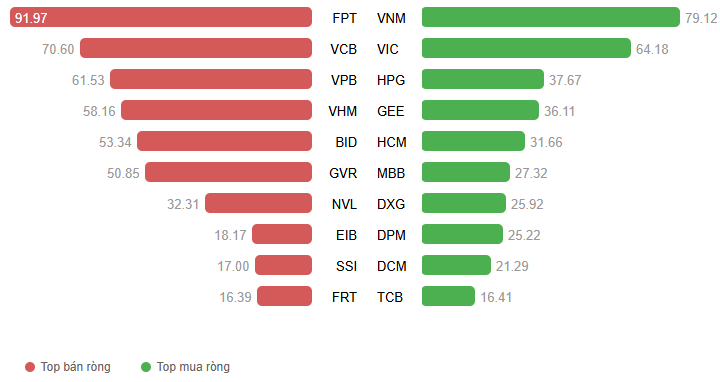 Giá trị giao dịch ròng theo mã cổ phiếu. Đvt: Tỷ đồng