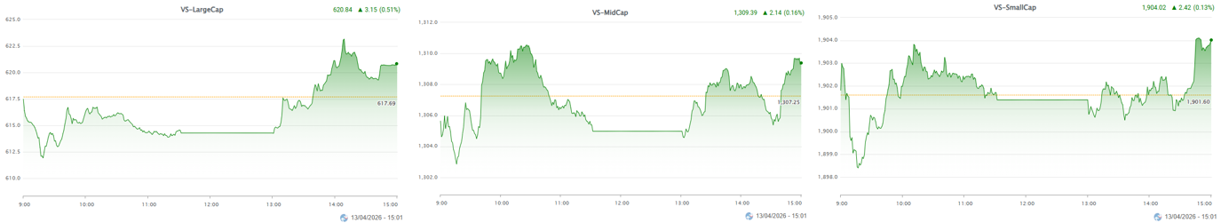 – Xét về nhóm vốn hóa, VS-LargeCap đóng vai trò dẫn dắt điểm số với mức tăng 0.5%. Trong khi đó, VS-MidCap và VS-SmallCap chỉ nhích nhẹ với trạng thái phân hóa mạnh, cho thấy dòng tiền vẫn mang tính chọn lọc cao.