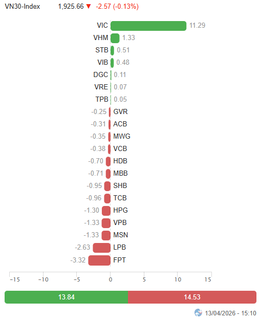 I. PHÂN TÍCH THỊ TRƯỜNG CHỨNG KHOÁN CƠ SỞ NGÀY 13/04/2026