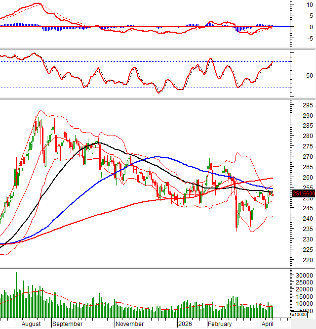Hiện tại, MACD tiếp tục nới rộng khoảng cách với đường Signal sau khi cho tín hiệu mua và tiến sát ngưỡng 0. Tuy nhiên, chỉ báo Stochastic Oscillator đã tiến vào vùng quá mua (overbought). Nếu tín hiệu bán xuất hiện trở lại trong các phiên tới thì rủi ro ngắn hạn có thể gia tăng.