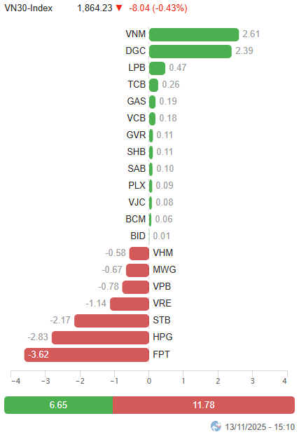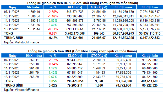 I. PHÂN TÍCH THỊ TRƯỜNG CHỨNG KHOÁN CƠ SỞ NGÀY 13/11/2025