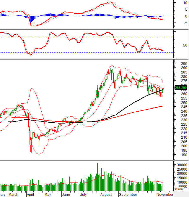 Chỉ báo Stochastic Oscillator đã cho tín hiệu mua trở lại trong vùng quá bán (oversold). Nếu tín hiệu mua tiếp tục duy trì và rời khỏi vùng này trong các phiên tới thì triển vọng ngắn hạn sẽ tích cực hơn.