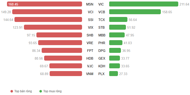 Giá trị giao dịch ròng theo mã cổ phiếu. Đvt: Tỷ đồng