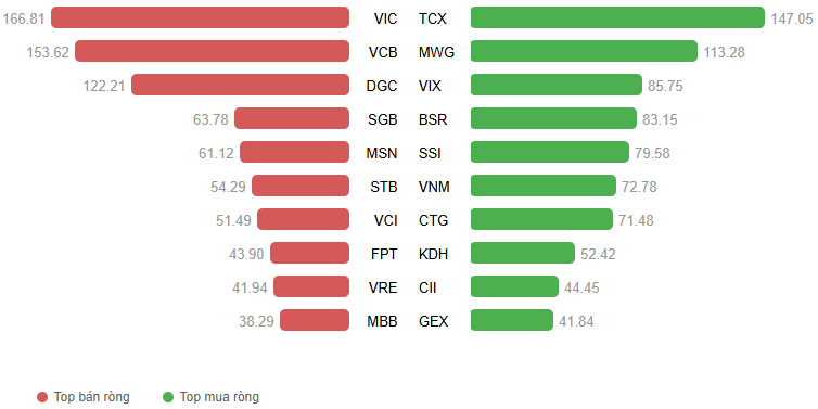 Giá trị giao dịch ròng theo mã cổ phiếu. Đvt: Tỷ đồng
