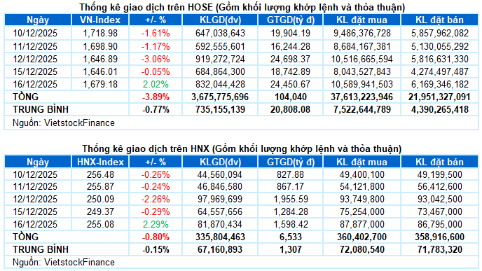 I. PHÂN TÍCH THỊ TRƯỜNG CHỨNG KHOÁN CƠ SỞ NGÀY 16/12/2025