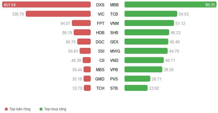 Giá trị giao dịch ròng theo mã cổ phiếu. Đvt: Tỷ đồng