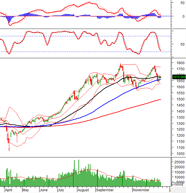 Chỉ báo MACD tiếp tục suy yếu và đang ở sát ngưỡng 0, qua đó làm gia tăng rủi ro ngắn hạn nếu chỉ báo cắt xuống ngưỡng này trong những phiên tới.