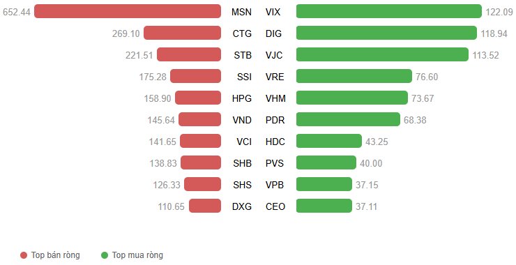 Giá trị giao dịch ròng theo mã cổ phiếu. Đvt: Tỷ đồng