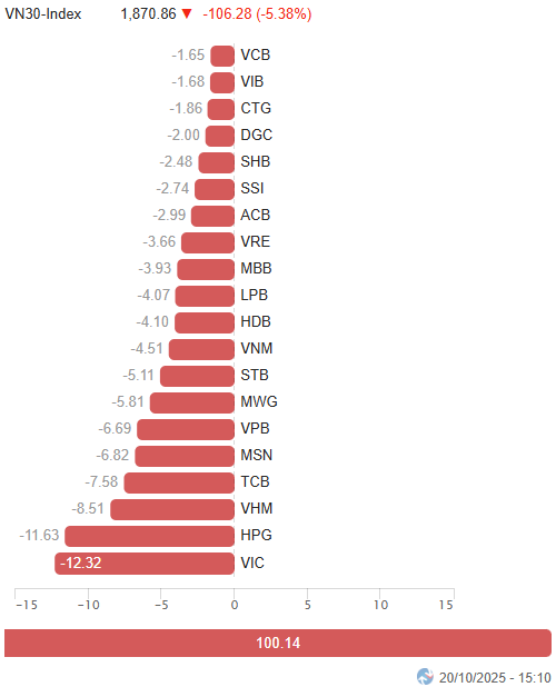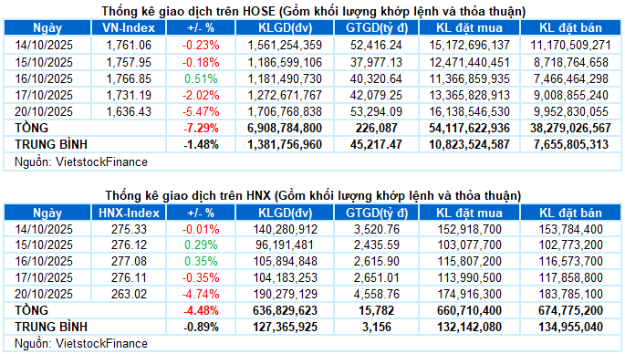 Vietstock Daily 21/10/2025: Bán tháo ồ ạt, rủi ro ngắn hạn tăng cao