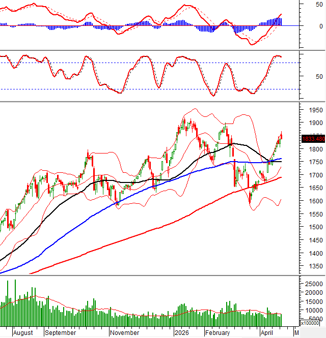 VN-Index đảo chiều về cuối phiên khi test lại đỉnh cũ tháng 02/2026 (tương đương vùng 1,860-1,900 điểm). Hiện tại, Stochastic Oscillator tiếp tục suy yếu sau khi cho tín hiệu tiêu cực trong vùng quá mua. Nếu chỉ báo rơi khỏi vùng này trong các phiên tới thì rủi ro ngắn hạn sẽ càng gia tăng.