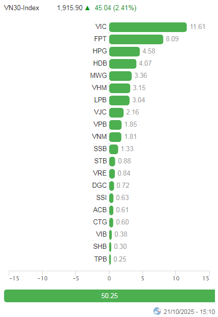 I. PHÂN TÍCH THỊ TRƯỜNG CHỨNG KHOÁN CƠ SỞ NGÀY 21/10/2025
