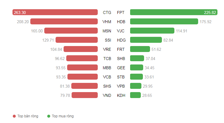 Giá trị giao dịch ròng theo mã cổ phiếu. Đvt: Tỷ đồng
