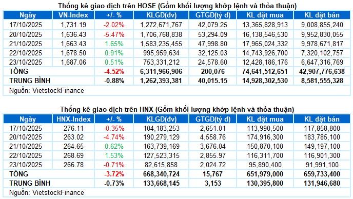 III. THỐNG KÊ THỊ TRƯỜNG NGÀY 23/10/2025