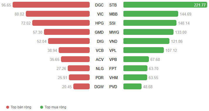 Giá trị giao dịch ròng theo mã cổ phiếu. Đvt: Tỷ đồng