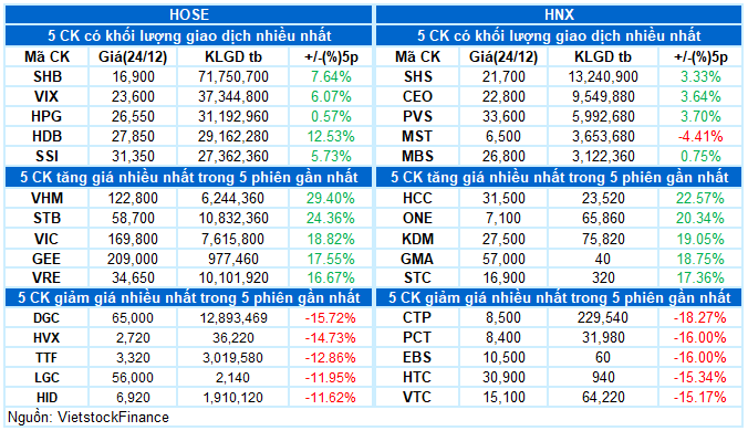 I. PHÂN TÍCH THỊ TRƯỜNG CHỨNG KHOÁN CƠ SỞ NGÀY 24/12/2025
