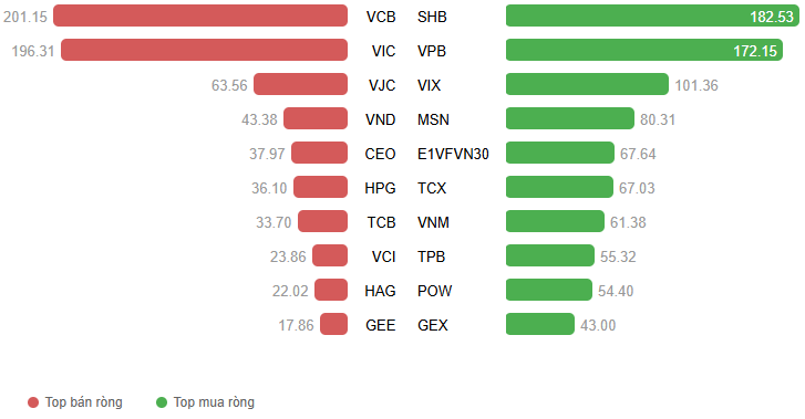 Giá trị giao dịch ròng theo mã cổ phiếu. Đvt: Tỷ đồng