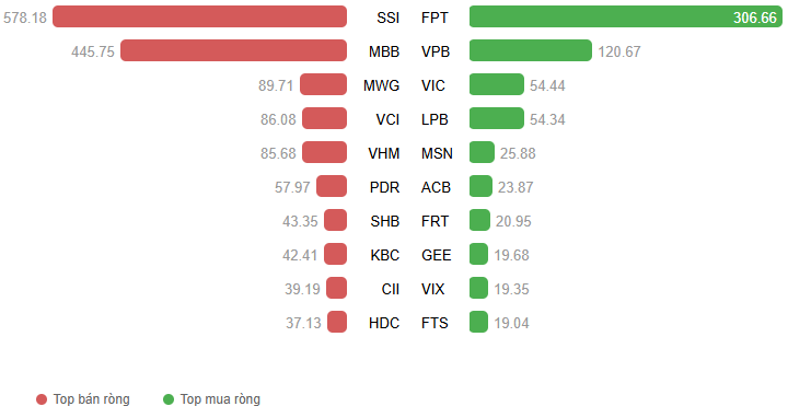 Giá trị giao dịch ròng theo mã cổ phiếu. Đvt: Tỷ đồng