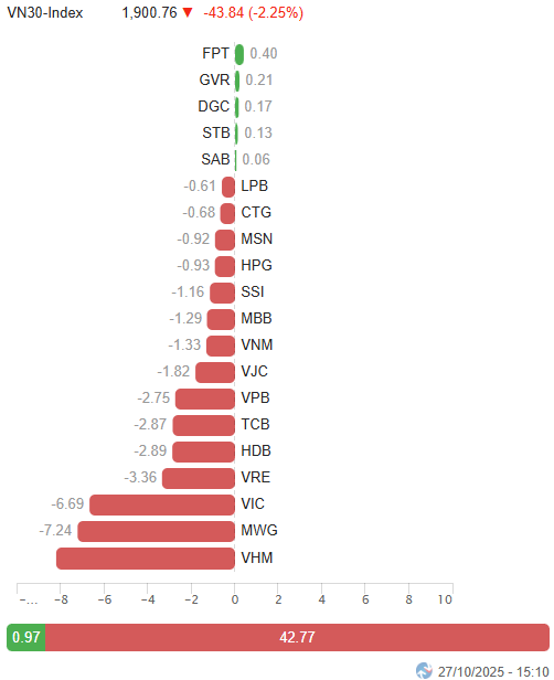 I. PHÂN TÍCH THỊ TRƯỜNG CHỨNG KHOÁN CƠ SỞ NGÀY 27/10/2025