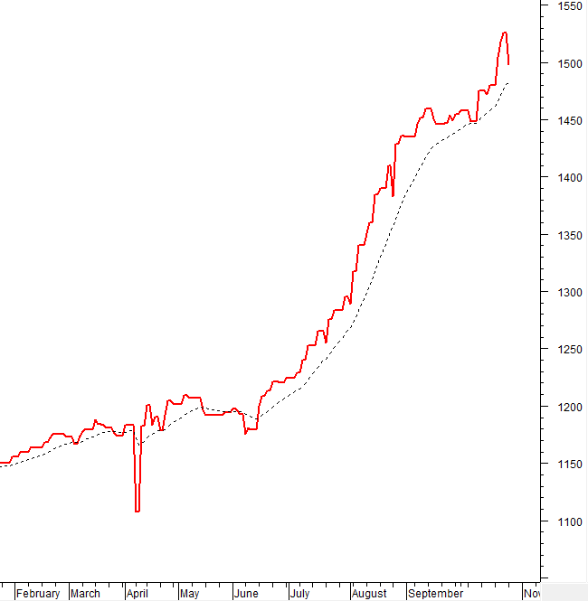 Biến động của dòng tiền thông minh: Chỉ báo Negative Volume Index của VN-Index đang nằm trên đường EMA 20 ngày. Nếu trạng thái này tiếp tục trong phiên tới thì rủi ro sụt giảm bất ngờ (thrust down) sẽ được hạn chế.