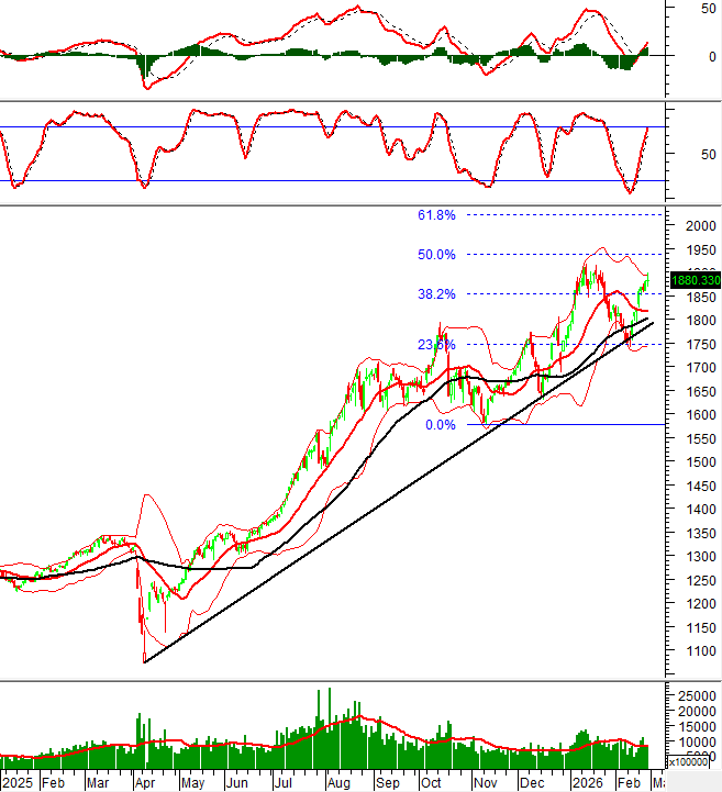 Hiện tại, chỉ số đang kiểm tra lại đỉnh cũ tháng 01/2026 (tương đương vùng 1,880-1,918 điểm).