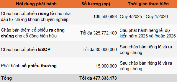 Các cổ đông còn thông qua bổ sung phương án chào bán ra công chúng tối đa gần 325.8 triệu cp, thực hiện sau khi chào bán riêng lẻ và trước hai đợt ESOP, thưởng cổ phiếu.