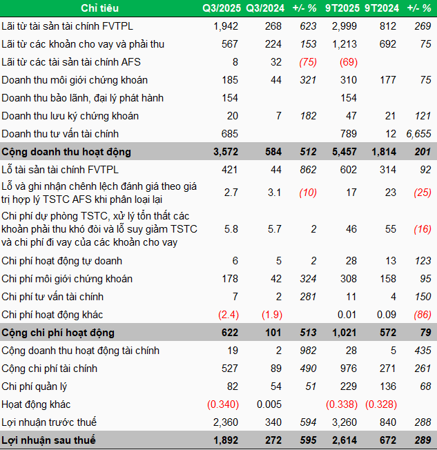 Nguồn: BCTC quý 3/2025 của VPBankS