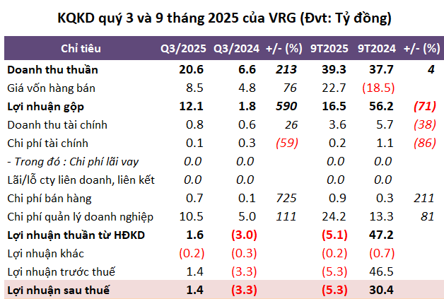 VRG lãi trở lại trong quý 3 nhờ hợp đồng thuê đất mới
